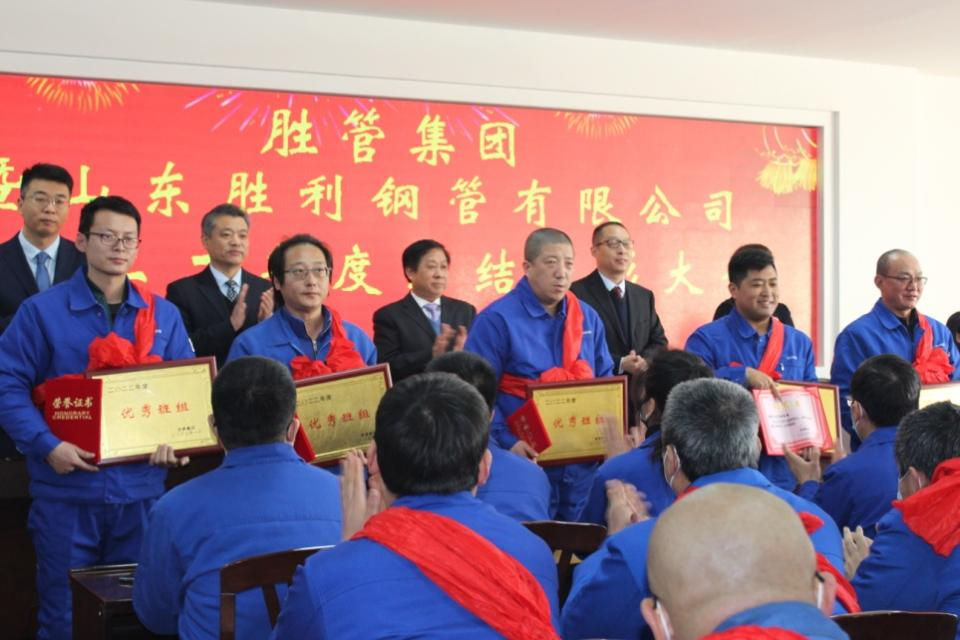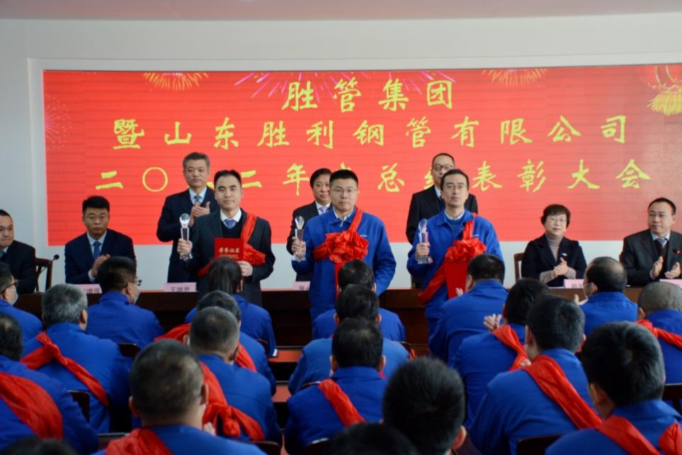 表彰大會由勝管集團(tuán)黨總支書記刁有大主持。會上,山東勝利鋼管有限公司副總經(jīng)理張圣光宣讀了勝管集團(tuán)《關(guān)于表彰2022年度先進(jìn)集體、優(yōu)秀班組、優(yōu)秀管理者、優(yōu)秀員工的決定》,對1個先進(jìn)集體、5個優(yōu)秀班組、3名優(yōu)秀管理者,26名優(yōu)秀員工進(jìn)行了表彰。