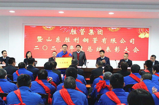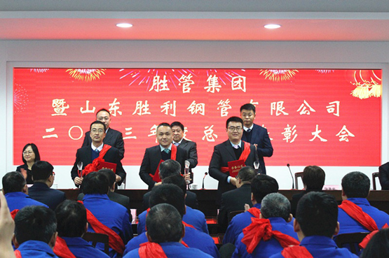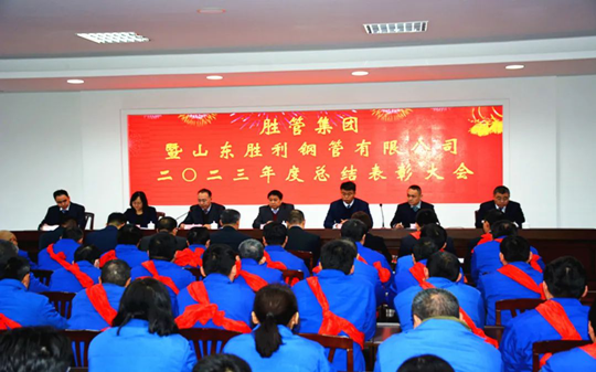 ?2024年1月20日上午,在莊嚴(yán)雄壯的國歌聲中,勝管集團(tuán)暨山東勝利鋼管有限公司2023年度總結(jié)表彰大會在集團(tuán)四樓會議室隆重開幕。勝管集團(tuán)經(jīng)理層、山東勝利全體中高層管理人員、公司外派人員代表、員工代表及全體受表彰人員參加了本次會議。